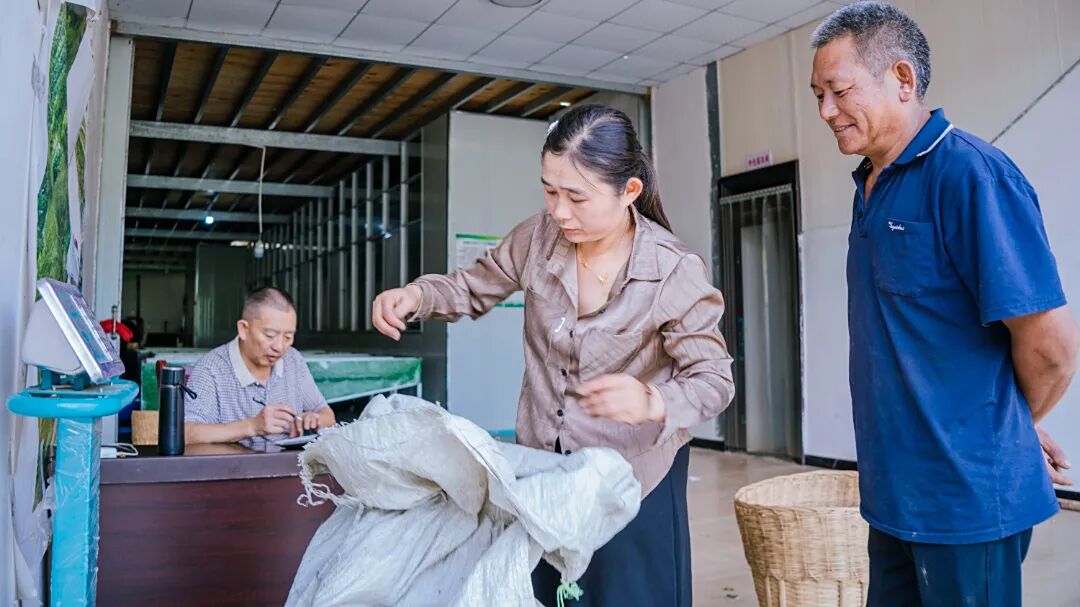 忙丙社区浪地坡组居民金国莲就是茶产业发展的直接受益人之一。凭借熟悉本地乡情、熟练掌握茶叶初加工工艺的优势,金国莲在沪滇茶厂找到了离家近、待遇优的工作。“我日常主要负责鲜茶叶初步分级工作,到这里上班以后,对制茶工艺优化、电商直播带货等新知识也有了些学习了解,个人能力和收入都有了显著提升。”金国莲一边将鲜茶叶均匀摊晾开,一边向记者说道。