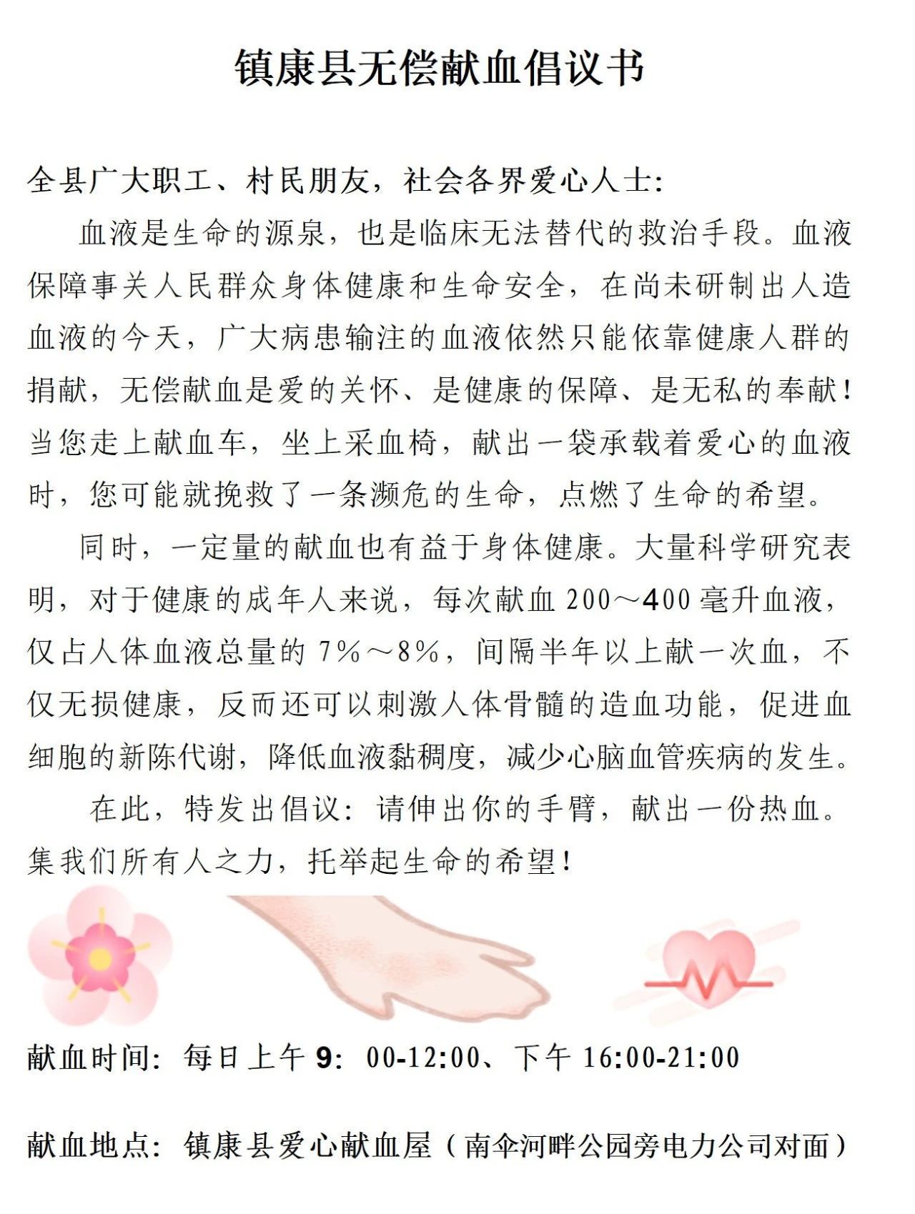 镇康县无偿献血倡议书