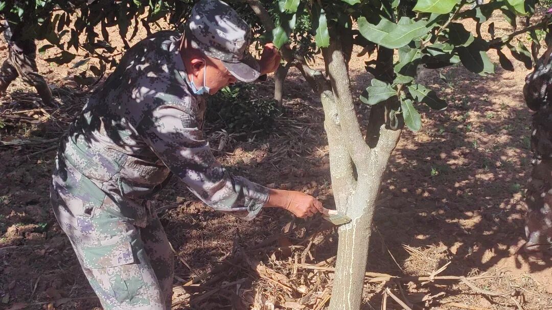 针对冬季防冻防虫关键环节,技术员现场演示树干涂白规范操作,按照科学比例调配生石灰、硫磺粉和食盐,详细解读“食盐增强附着力、硫磺粉杀菌驱虫”的原理,强调“涂匀不流淌、厚薄适中、主干覆盖80厘米以上”的操作要领。种植户们分组动手实践,技术人员巡回指导、逐一纠正不规范动作,“以前涂白都是凭感觉随便抹,现在才知道这里面有这么多学问!”完成实操的李大哥看着均匀涂白的树干,满脸笑意地分享收获。