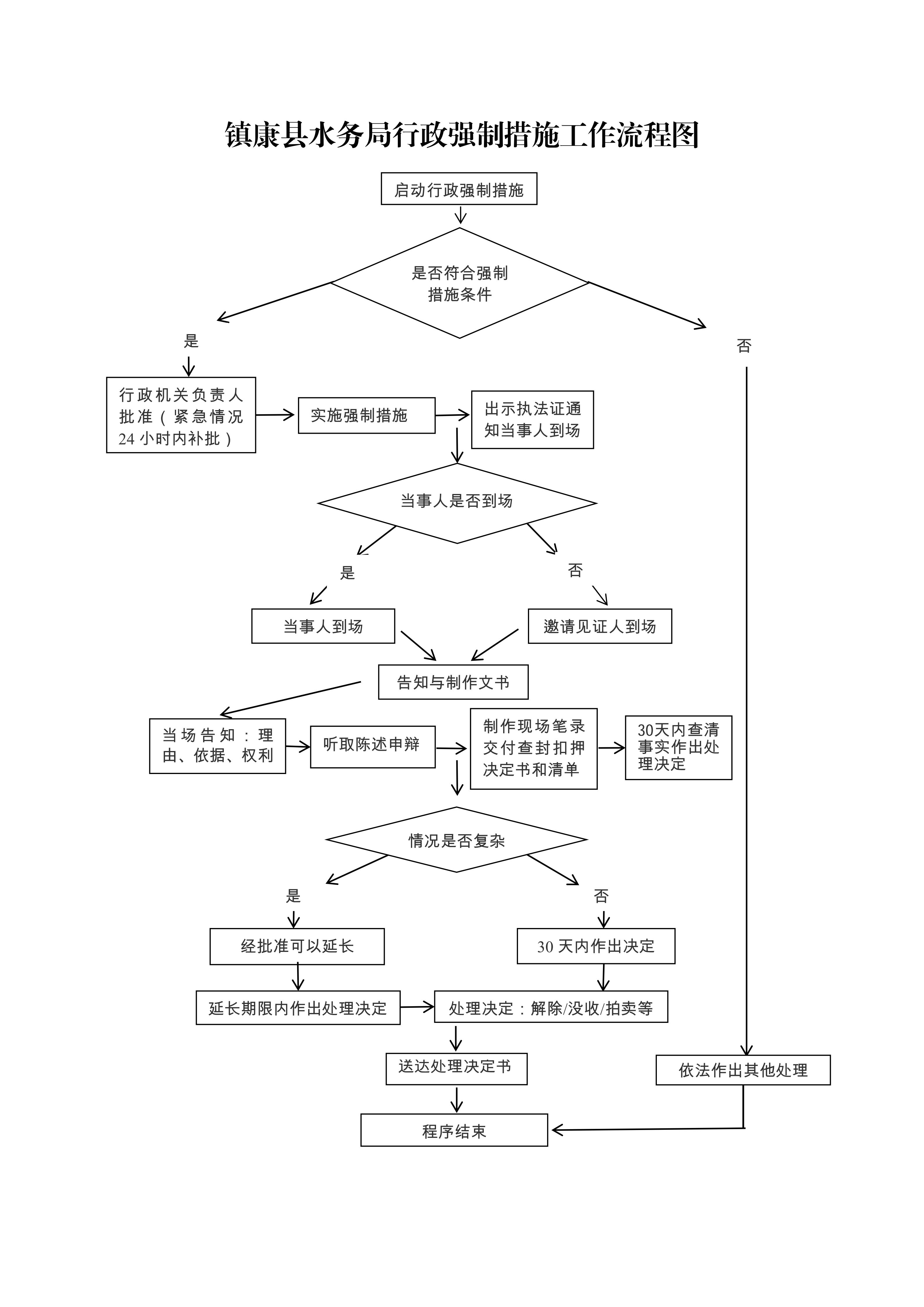 镇康县水务局行政检查、行政处罚简易程序、行政处罚普通程序、行政许可、行政强制执行、行政强制措施工作流程图