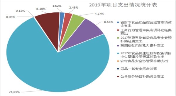 省对下食品药品综合监管专项资金支出1.89万元;2018年工商行政管理中央专项补助经费支出2.84万元;2017年第五批省级食品安全专项补助经费支出5.00万元;第四批忙丙所能力提升支出10.00万元;2017年食品快速检测车配备项目中央基建投资预算拨款支出87.53万元;农村食品安全协管员补助支出0.04万元;四品一械安全综合监管、队伍建设、监管能力提升、检验检测能力提升资金支出0.14万元;2018年公共服务项目补助资金支出9.57万元