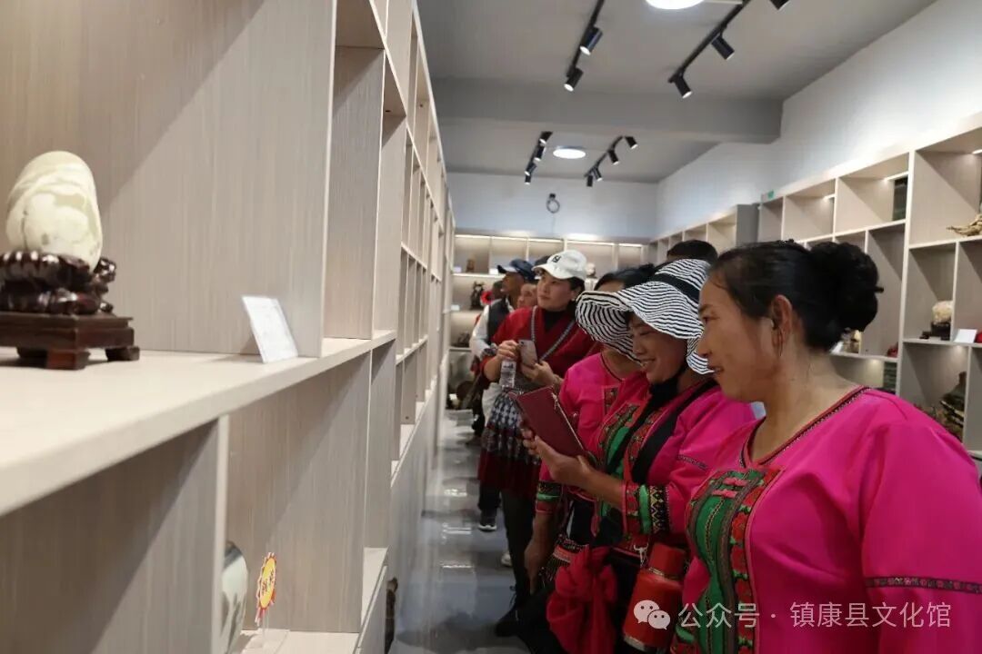 文化体验:赏奇石之美,品非遗之韵。展演结束后,与会人员一同步行至碧寨奇石馆参观。馆内陈列的各类天然奇石,与非遗歌舞形成了“静”与“动”的美妙对话,展示了碧寨乡自然与人文交相辉映的独特魅力。参观过程中,两地非遗传承人边走边交流,不时停下脚步即兴对歌,现场气氛轻松愉快。