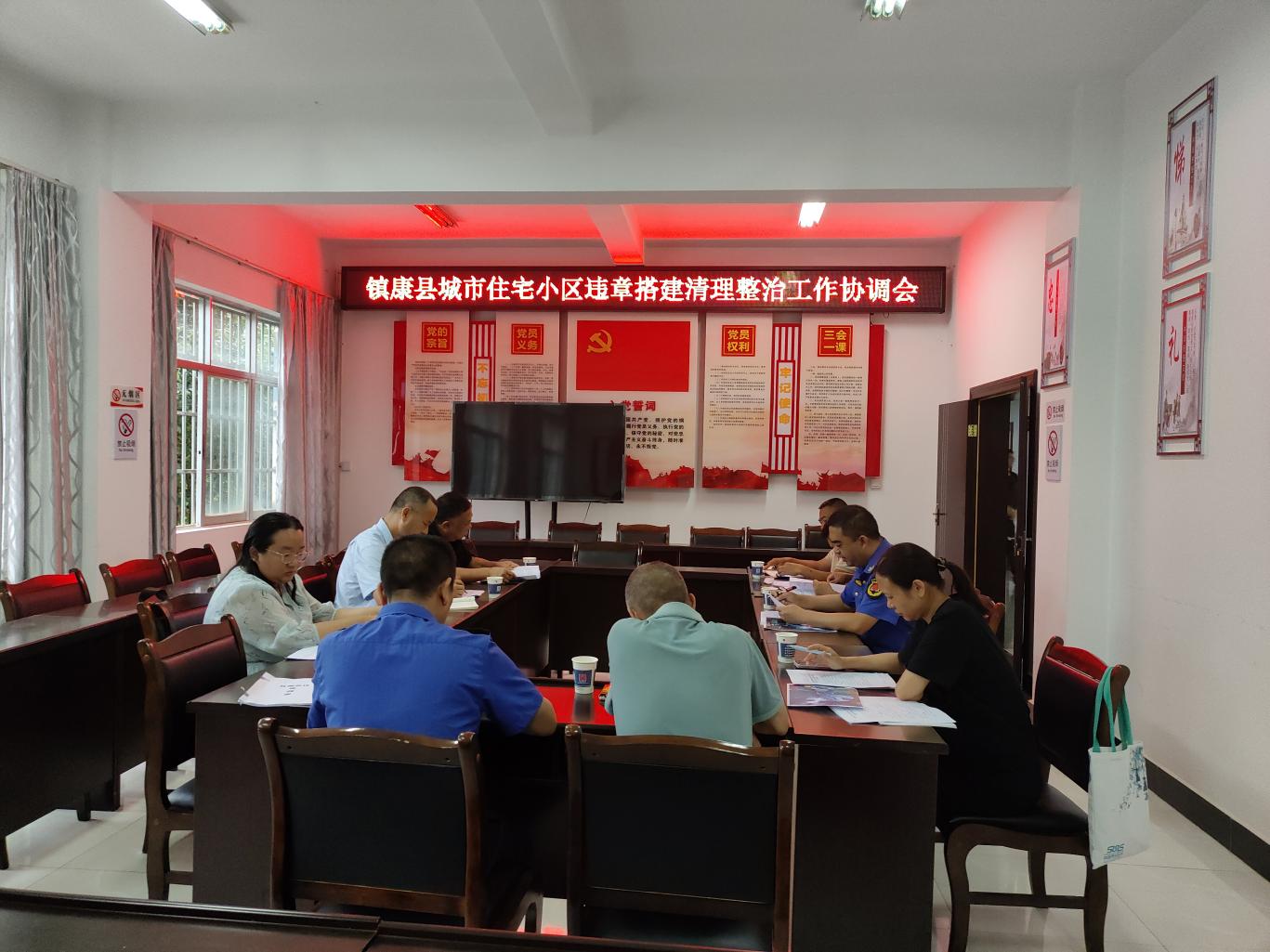 会上,一是传达学习《临沧市城镇住宅小区违章搭建清理整治工作七项制度》《临沧市住房和城乡建设局关于印发临沧市住宅小区违法建筑早发现、早制止、早处置工作机制的通知》《云南省住房城乡建设厅关于做好城镇住宅小区突出问题专项整治行动相关工作的通知》等文件精神,统一思想认识,明确工作标准和要求。二是通报近期我县城市住宅小区违章搭建排查整治工作开展情况及相关安全隐患。三是各参会部门结合自身工作职责,重点对本部门近期的工作进展、存在问题、下一步工作打算,以及需要跨部门协调解决的事项作发言。