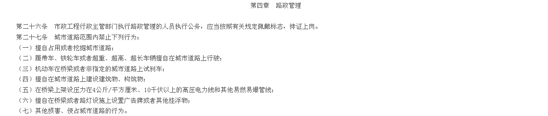 2.《城市道路管理条例》第二十七条规定,第七项“其他损害、侵占城市道路的行为”。