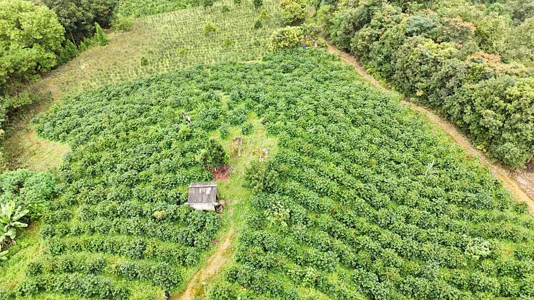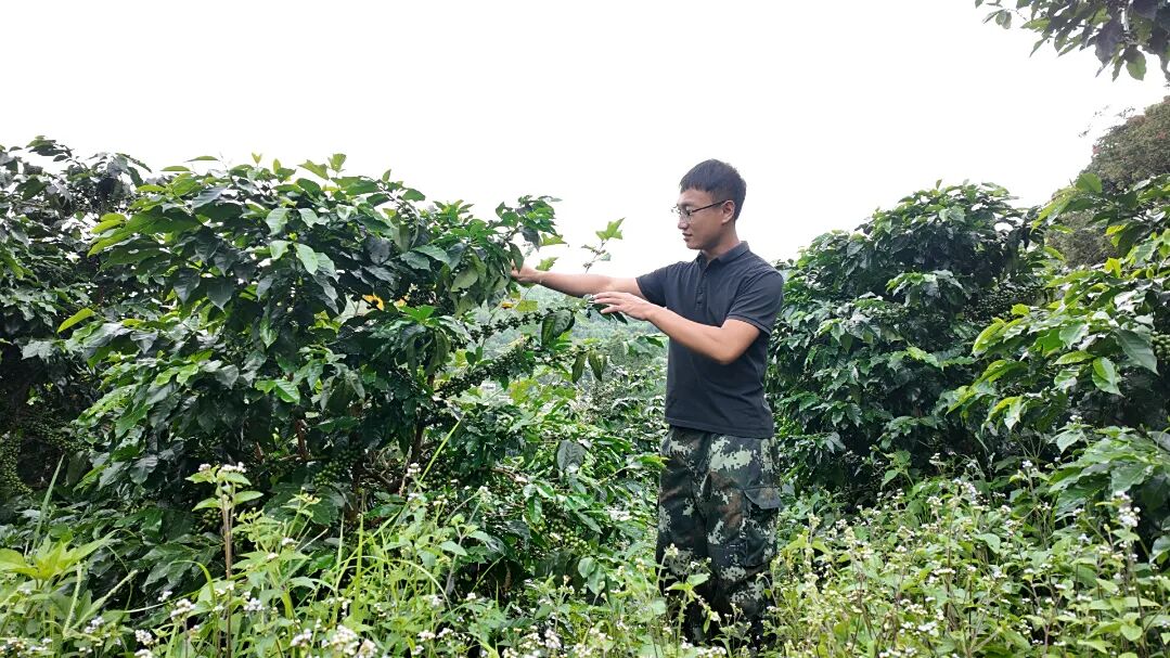 种植户字文军穿梭在自家的咖啡园中,仔细查看咖啡果的生长情况。“今年雨水充足,咖啡树长得特别好,挂果率比去年高了不少。”字文军高兴地说道。