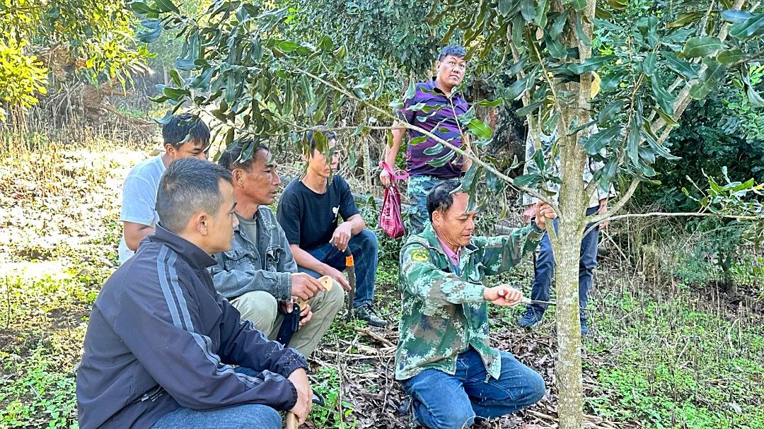 为让政策真正“入脑入心”,宣讲队创新“三讲模式”。在村民院里开“院坝会”,用德昂语、傣语、佤语等少数民族语言解读政策;在田间地头办“实践课”,指导农户运用坚果“六项核心技术”;在电商服务站设“直播间”,坚果合作社技术人员科普坚果种植知识。截至目前,累计开展宣讲32场,覆盖群众6000余人次。