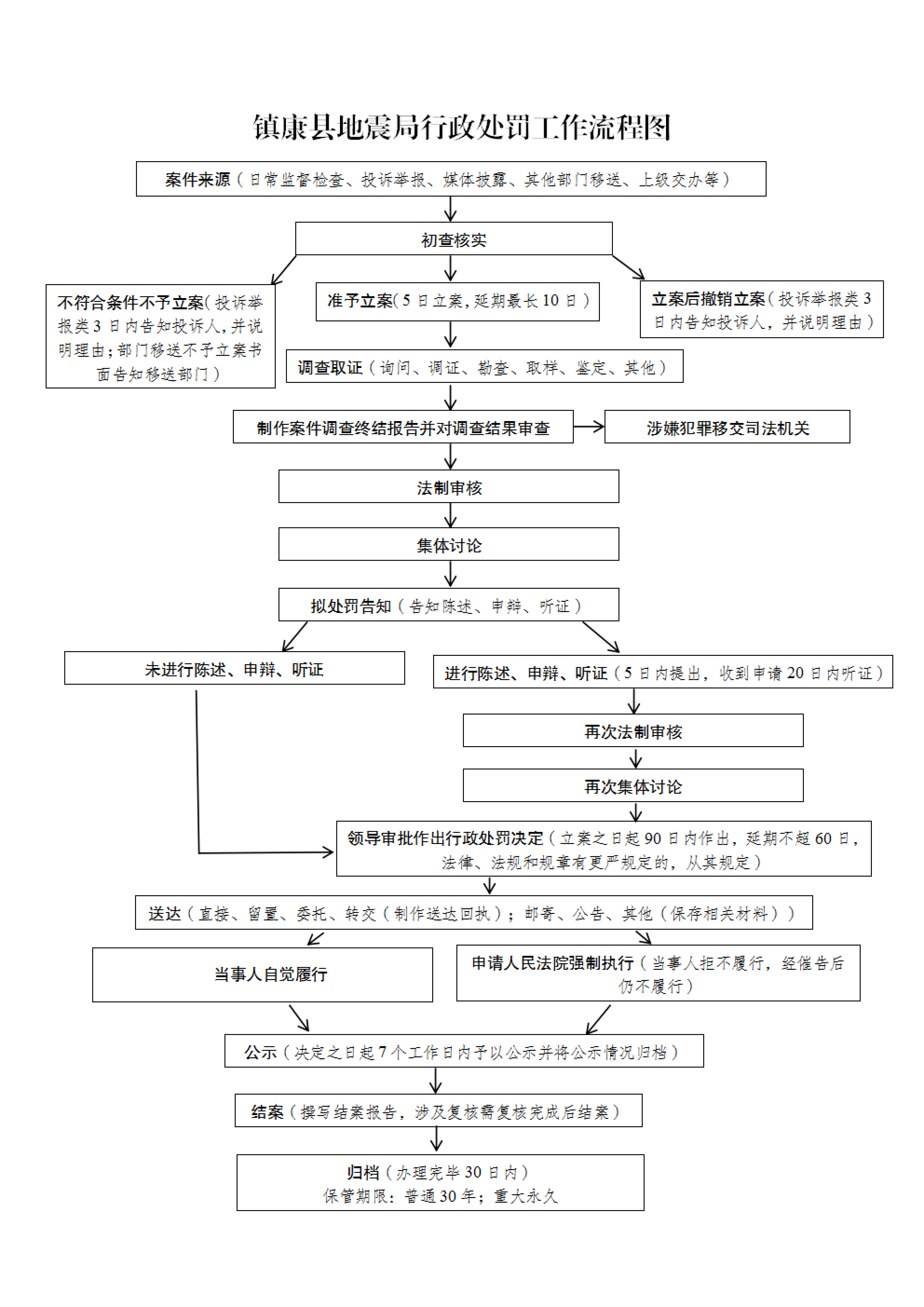 镇康县地震局行政处罚普通程序工作流程图、镇康县地震局行政检查工作流程图