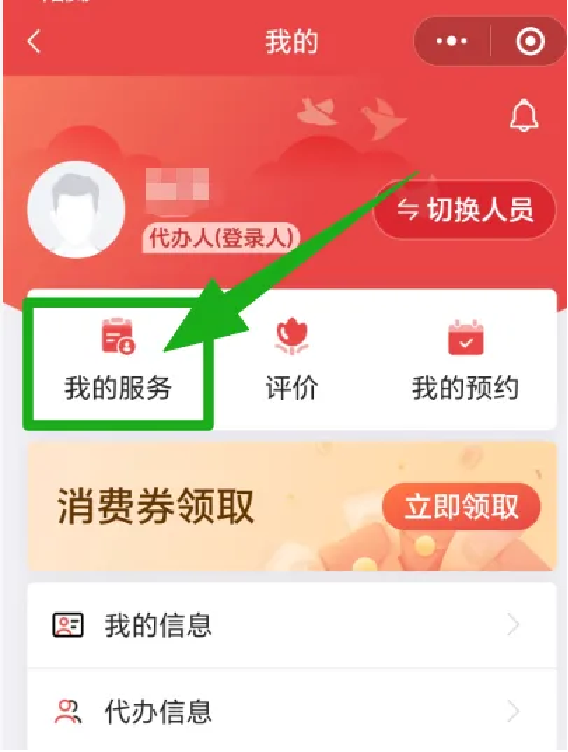 在“民政通”首页点击进入“养老服务消费券补贴项目”,点击“消费券领取”,点击“换券”,点击“确认”更换此消费券,完成消费券抵扣步骤。