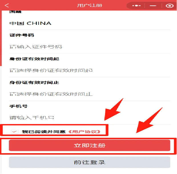 3.填写完毕个人信息后,需勾选“我已阅读并同意《用户协议》”选项框,点击“立即注册”按钮完成账号创建。