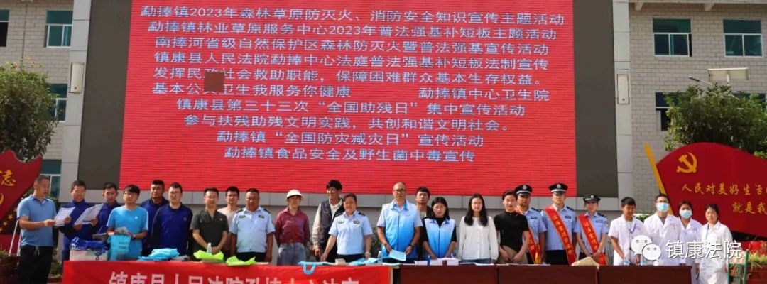 近日,勐捧镇以街天群众赶集为契机,组织镇综治办、边境派出所、司法所、法庭、残联、应急等9个部门结合“5.12”“全国防灾减灾日”和“5.19”全国助残日联合开展普法宣传活动,让法治宣传在集镇落地生根,进一步落实防灾减灾和应急避险各项措施,提高我镇全体人民的防灾减灾意识、安全意识、防护能力和应急避险能力,最大限度保障人民群众的生命安全,确保我镇安全稳定。