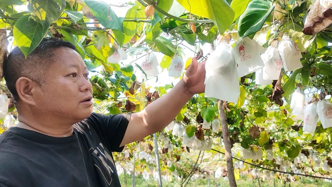 2023年,在西双版纳州勐海县做茶生意的周正华偶然品尝到热情果,他发现流水村海拔适中、气候温润,非常适合热情果生长,就决定返乡创业试种6亩。为掌握种植技术,周正华多次前往外地考察学习,攻克了山地种植、病虫害防治等难题。“今年我们热情果基地扩大到80多亩,亩产量1500斤左右,纯收益可达26000元左右,远超传统农作物。”看着满棚硕果,周正华欣喜地说道。热情果特色种植还带动了周边农户,昔日的高山荒坡变成了名副其实的“聚宝盆”。