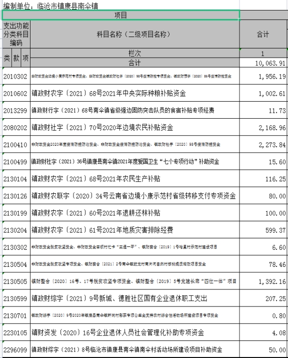 镇康县南伞镇人民政府2021年度部门决算